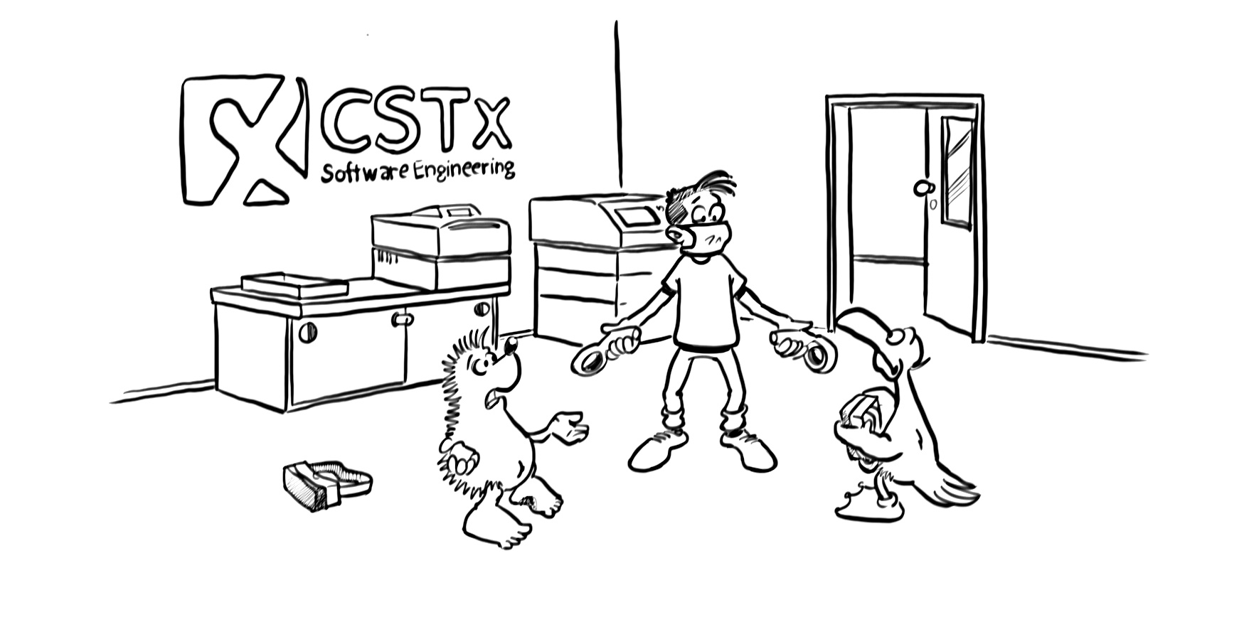 Herzlich willkommen in unserem kleinen Abenteuer mit unseren Maskottchen Caesar und Tix. Bitte klicken Sie einfach die Links im Text, um sich durch die Geschichte zu bewegen. Die Bilder dienen lediglich der Illustration und sind nicht interaktiv.